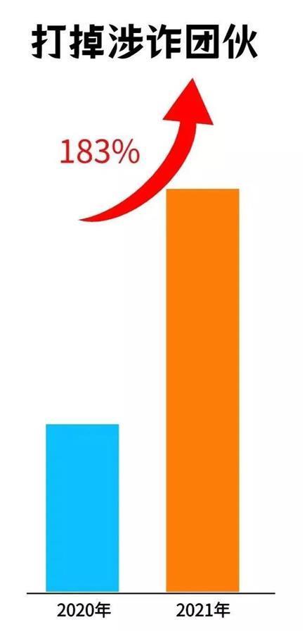 電詐案件立案數(shù)從2020年同比上升21.5%到2021年同比下降2.2%。