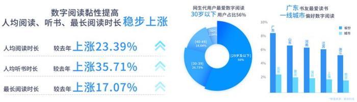報告顯示,2021年度掌閱平臺用戶數字閱讀時間分布均勻,人均閱讀時長、人均聽書時長、最長閱讀時長較上一年度分別上漲23.39%、35.71%、17.07%。從用戶構成上看,30歲以下的網生代用戶是平臺數字閱讀的主力軍,占比達到56%。