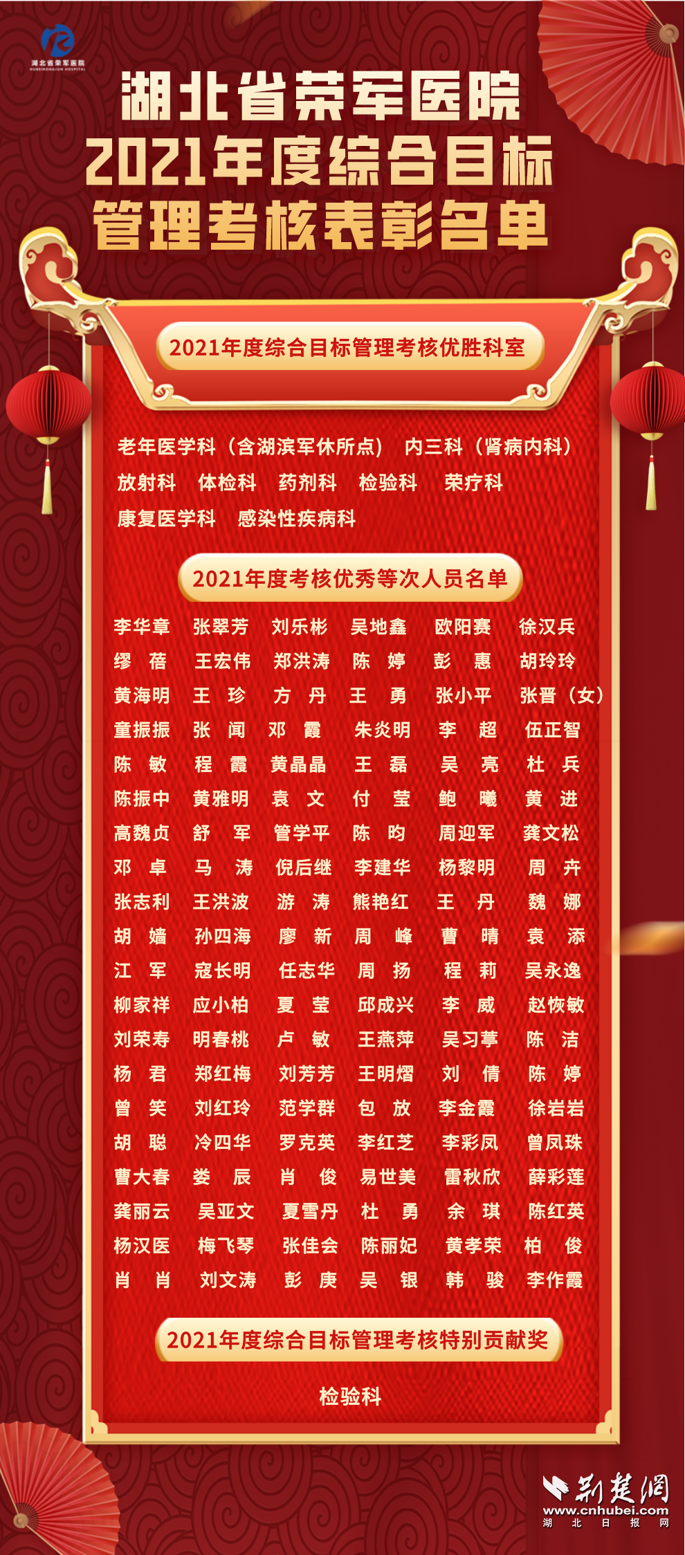 荊楚網(湖北日報網)訊(通訊員孫四海)1月18日,湖北省榮軍醫院召開2022年工作會議。省榮軍醫院黨委書記馬漢江出席會議并講話,會議由院黨委副書記、院長鄧祖華主持。省榮軍醫院班子成員、各科室主要負責人、受表彰的年度考核優勝科室負責人、年度考核優秀等次人員代表、職工代表共90余人參加會議。