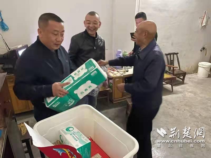 黃勝全為社區老兵發放生活物資。金沙社區退役軍人服務站供圖