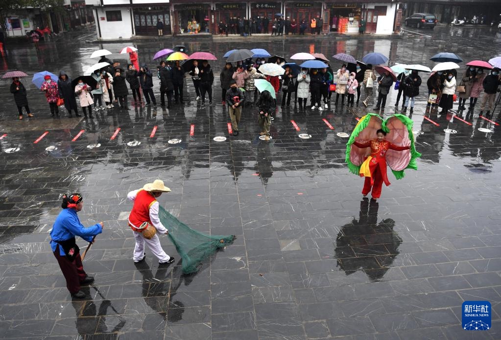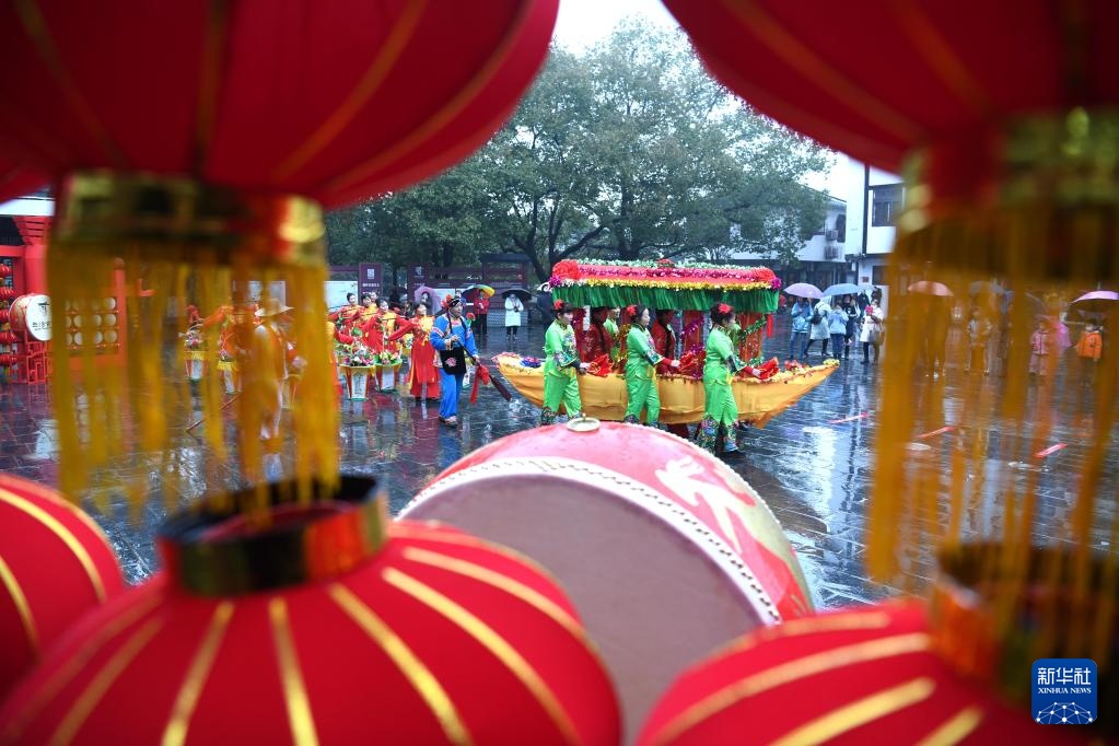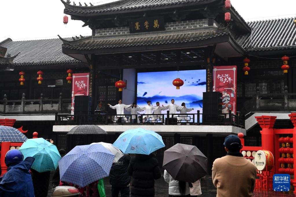 當(dāng)日,安徽省合肥市肥西縣三河古鎮(zhèn)舉辦“民俗表演迎新春”文化活動(dòng),民間文藝團(tuán)體表演河蚌舞、大鼓、鬧花船等民俗節(jié)目,喜迎新春佳節(jié)。