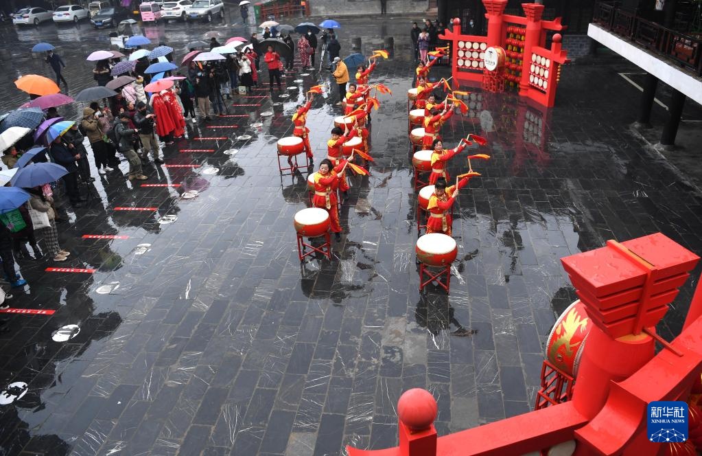 1月24日,民間文藝團(tuán)體在合肥市肥西縣三河古鎮(zhèn)表演大鼓。