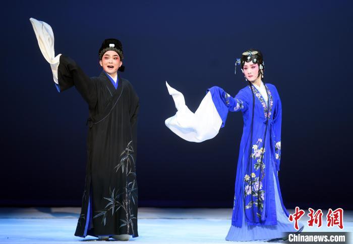 在劇中,唐琬由國家一級演員鄭全(右)飾演,陸游則由中國戲劇梅花獎得主陳麗宇(左)飾演。 記者劉可耕 攝