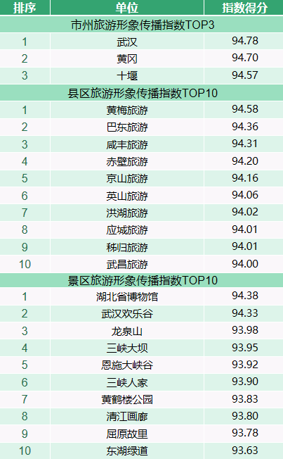 1月26日,荊楚網(wǎng)(湖北日報(bào)網(wǎng))、楚天輿情數(shù)據(jù)研究院發(fā)布湖北旅游傳播指數(shù)2021年12月榜(數(shù)據(jù)統(tǒng)計(jì)時(shí)間:2021年12月1日至12月31日)。本階段,黃梅旅游傳播指數(shù)位居縣區(qū)首位,武漢市傳播指數(shù)居市州首位,湖北省博物館成為本期傳播指數(shù)最高的景區(qū)。