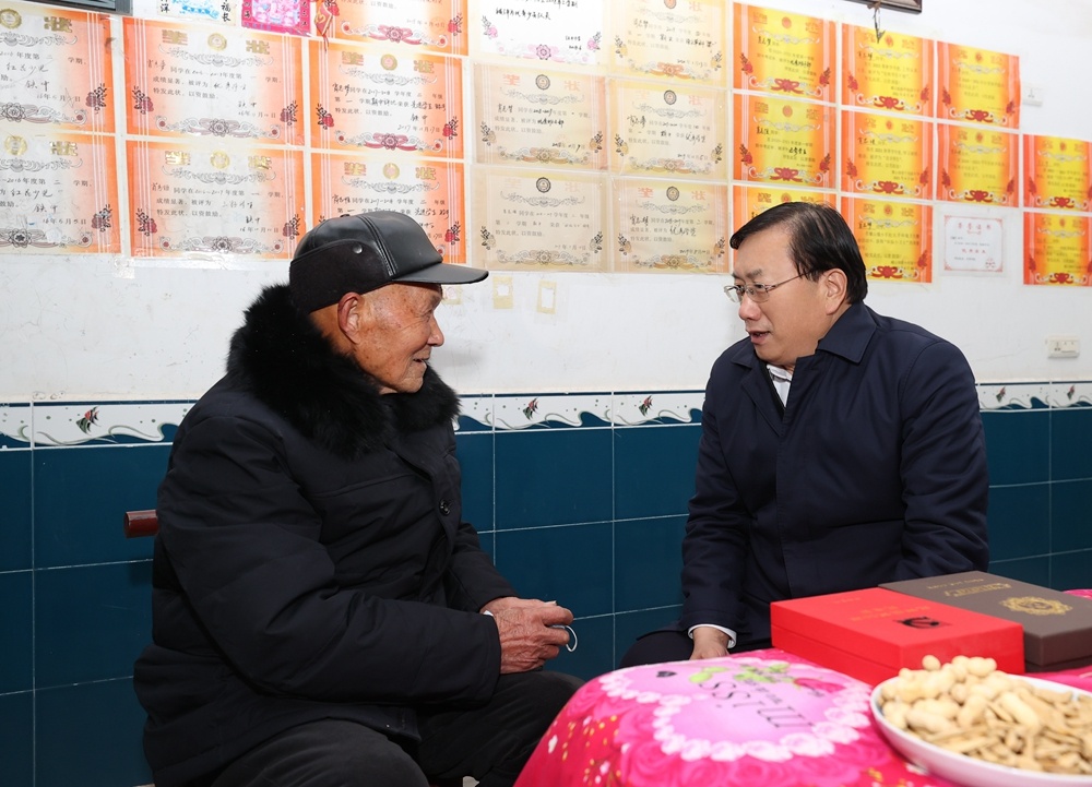 王忠林來到荊州洪湖市走訪慰問社會福利機構(gòu)、困難黨員。95歲的螺山鎮(zhèn)鐵牛村肖太勝老人是新中國成立前入黨的老黨員,王忠林登門看望,與老人促膝交談,詳細詢問身體狀況和家庭情況,代表省委省政府送上節(jié)日問候,祝愿他健康長壽、晚年幸福;叮囑相關(guān)單位帶著感情、帶著責任做好服務(wù)工作。