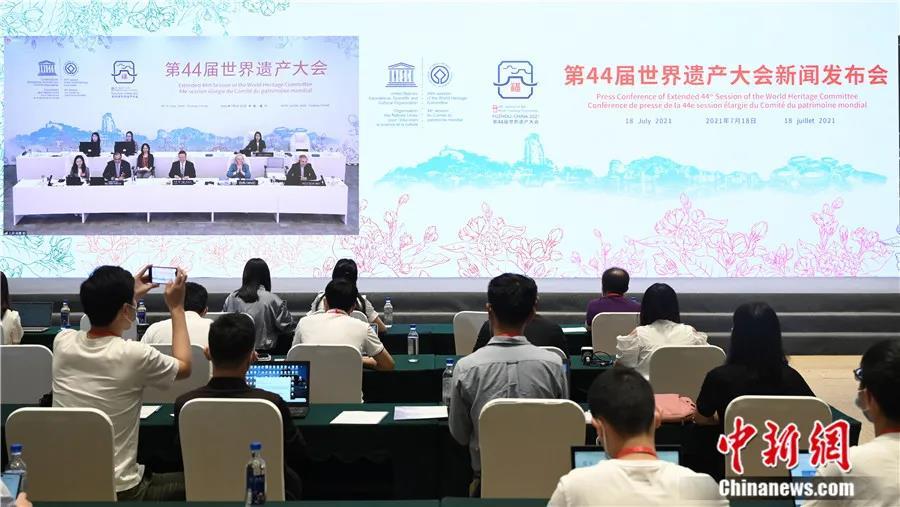 2021年7月,于福州市舉行的“第44屆世界遺產大會”召開視頻新聞發布會,介紹大會通過的《福州宣言》相關情況。中新社記者 張興龍 攝