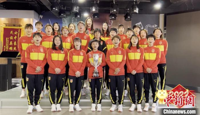中國國家女子足球隊通過云連線方式與現場演員共唱一首《風雨彩虹鏗鏘玫瑰》,中國女足永不言棄的拼搏精神將整場晚會的熱烈氛圍推向高潮。