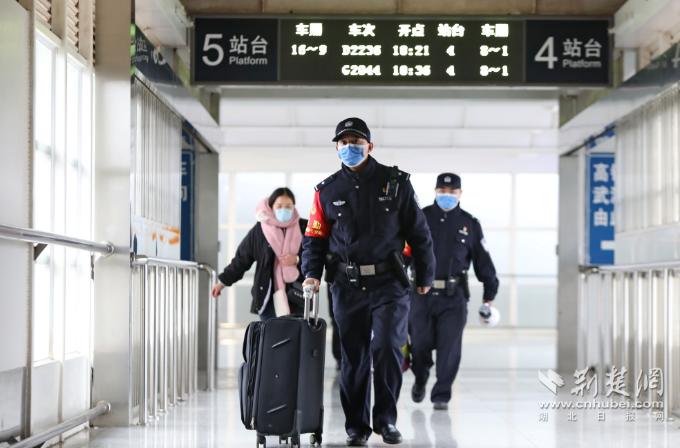 在武漢鐵路公安處陽新車站派出所民警及時幫助下,田女士順利登乘G2039次列車(通訊員鐘鵬宇攝)