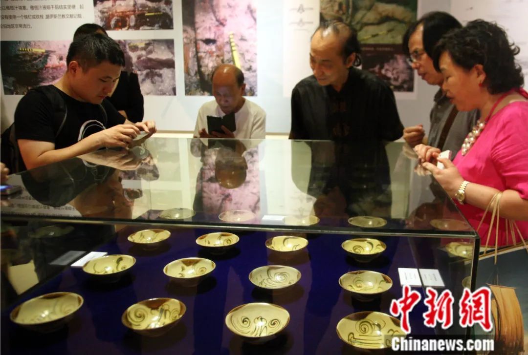 2014年,“黑石號”沉船唐代長沙窯瓷器展在長沙市博物館舉行,展出的150余件長沙窯是當地收藏家從海外購買的“黑石號”出水瓷器和長沙窯遺址出土的精美器物。中新社記者 鄧霞 攝