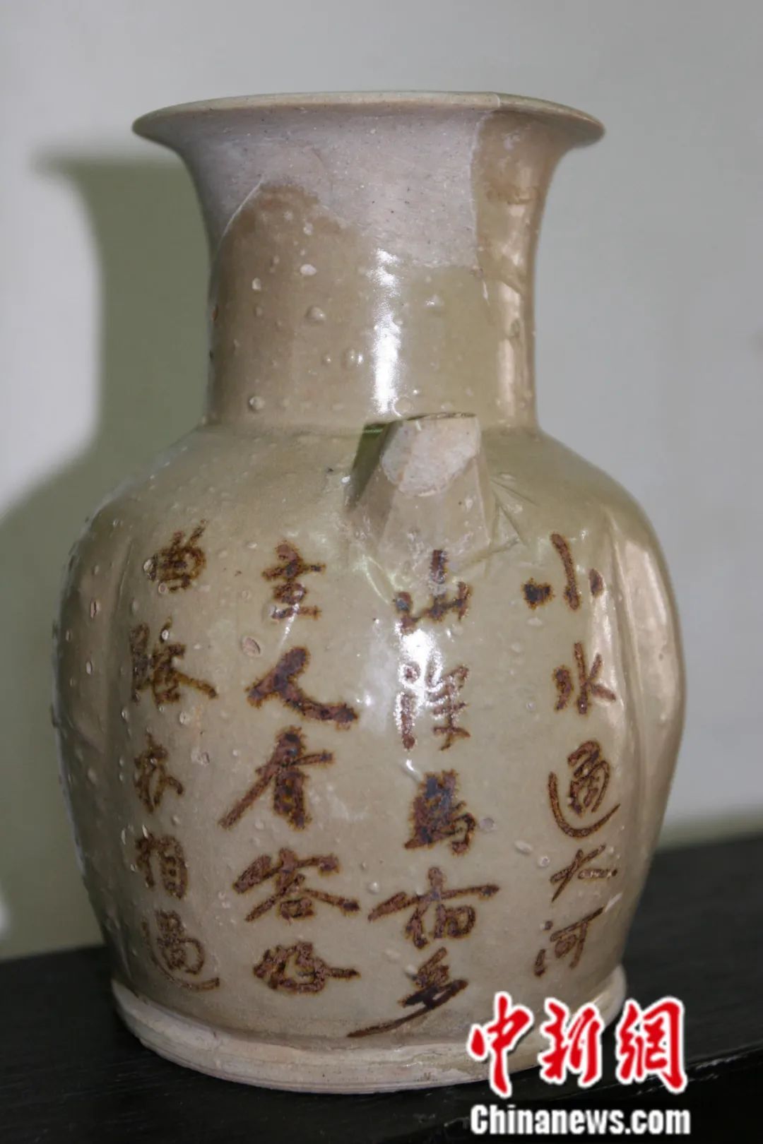 圖中長沙唐代銅官窯瓷器上是一首寫旅店客棧的詩:“小水通大河,山深鳥宿多。主人看客好,曲路亦相過。”反映了唐代商業發展,旅店興盛。中新社記者 劉雙雙 攝