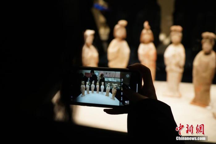 資料圖:河南博物院展出的唐俑吸引游客。 中新社記者 闞力 攝
