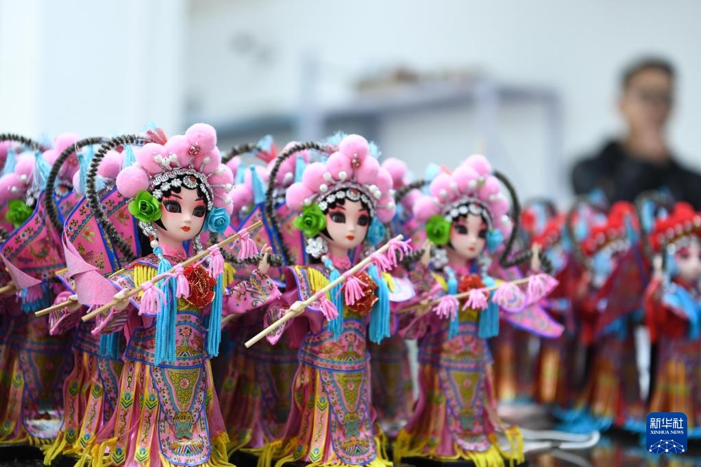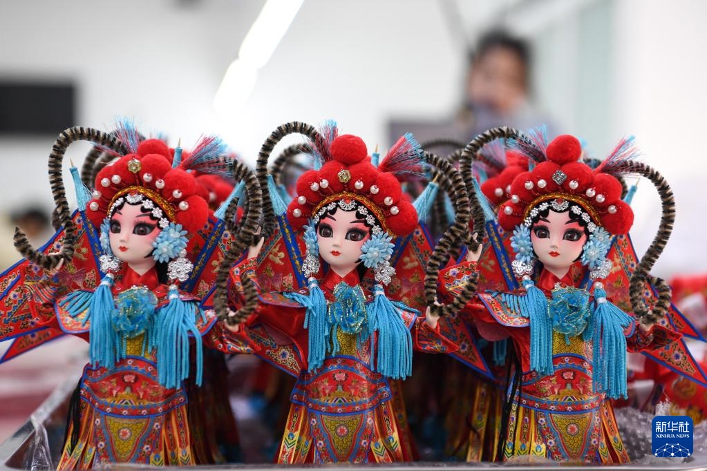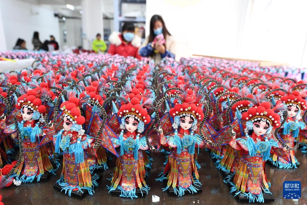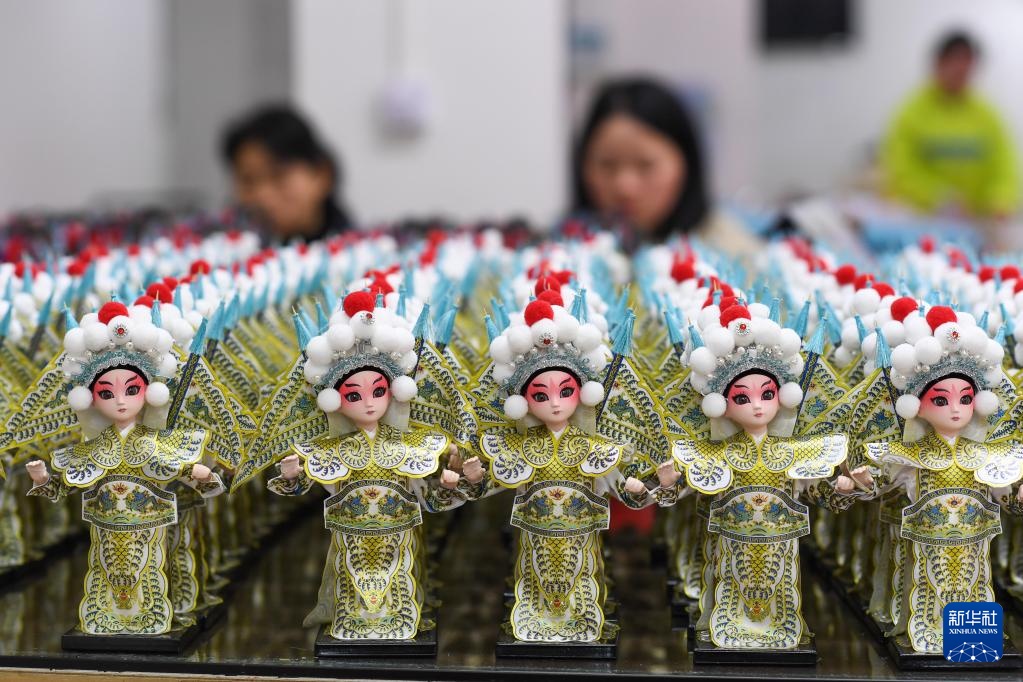 在惠水縣幸福移民社區唐人坊產教融合基地拍攝的組裝完畢的“唐娃娃”(3月1日攝)。