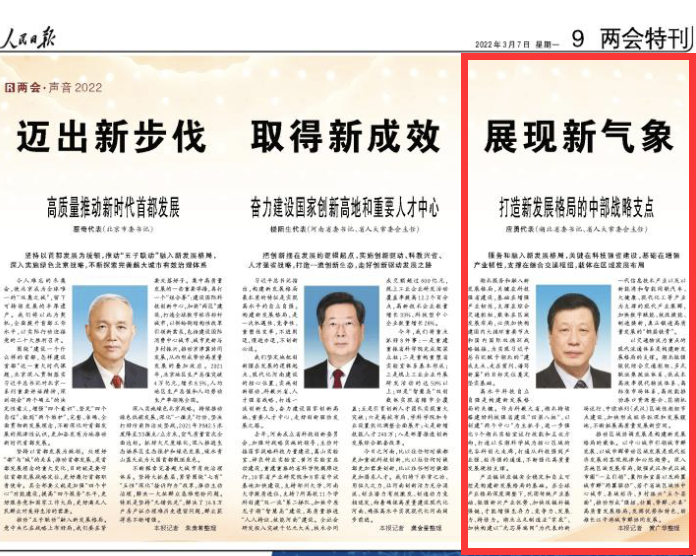 今日出版的《人民日報》兩會特刊刊發(fā)湖北省委書記應(yīng)勇文章《打造新發(fā)展格局的中部戰(zhàn)略支點》。
