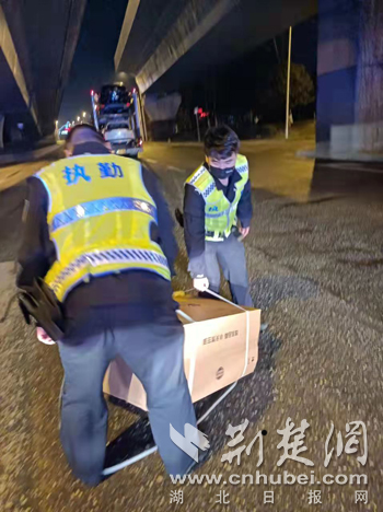3月8日21時許,武漢經開區公安分局十里鋪檢查站副站長胡瑋,帶隊在轄區巡邏時,發現東風大道快車道上散落著幾個大紙箱,經過此路段的車輛紛紛緊急剎車避讓,情形十分危險。