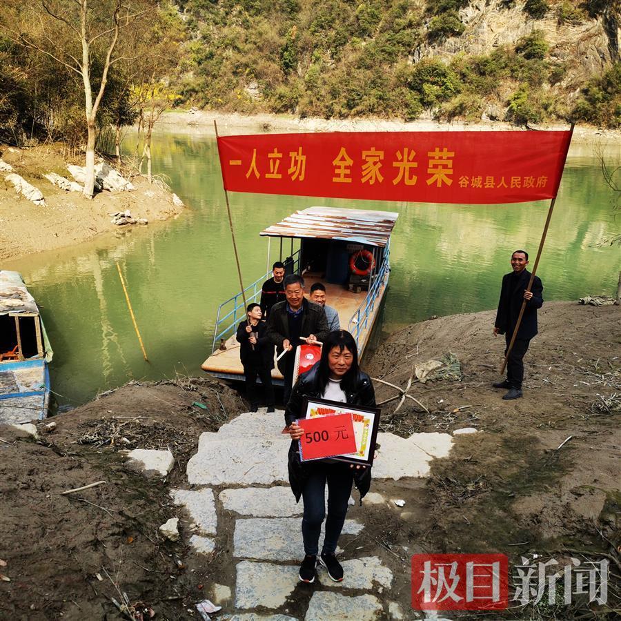 洪峪村是谷城縣紫金鎮最偏遠的一個村,位于南河流域上游地帶,由于山區地勢陡峭交通不便,要想將喜報送上門只能乘坐人工木船。紫金鎮黨委委員、副鎮長牛挽瀾在得知陳仁濤宋立三等功的消息后,當即決定不管多遠也要將喜報送上門,在經過三個多小時的跋山涉水之后,小分隊終于將喜報第一時間送到了陳仁濤的家中。