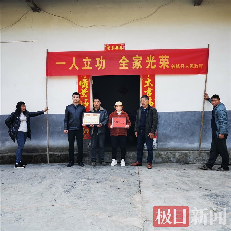 3月9日,湖北襄陽市谷城縣紫金鎮黨委政府領導帶領退役軍人服務站工作人員,跋山涉水,敲鑼打鼓,乘車、坐船又爬山,把在杭州服役的谷城籍現役軍人陳吉濤榮立三等功的喜報和獎勵金,送到居住在洪峪村的父母手中。