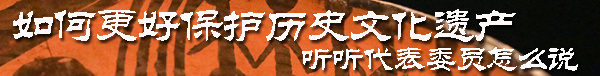 作為文化界的人大代表,我希望并建議,我們的歷史文化遺產的傳承和保護,除了在國家層面的立法上更加完善,更重要的是,我們還必須在全社會形成更濃厚的保護歷史文化遺產和傳統的意識,應該促進并形成歷史文化遺產保護的全社會的監督機制。我相信只要我們不遺余力地朝著既定的目標前進,我們就會在“兩個文明”的建設上取得決定性勝利。