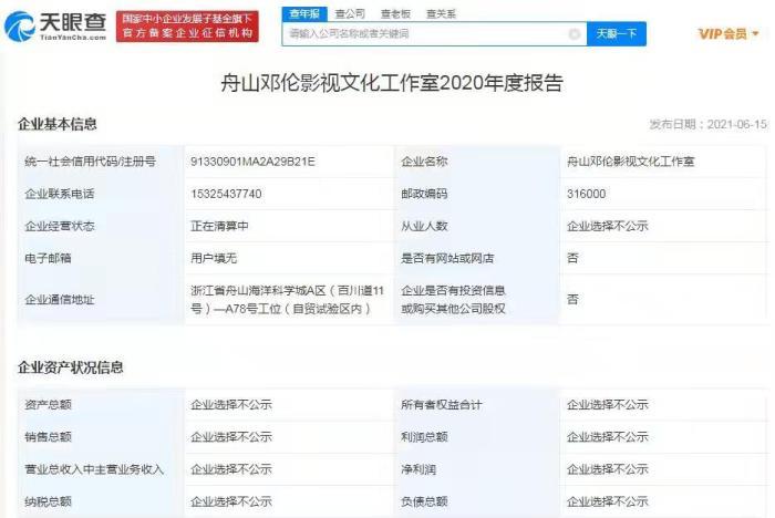 綜藝節(jié)目的拍攝周期短,回報率高,可見鄧倫頗具“商業(yè)頭腦”。據(jù)天眼查App顯示,鄧倫名下有2家公司,為鄧倫(上海)影視文化工作室和舟山鄧倫影視文化工作室,2家工作室分別成立于2016年和2018年,均為鄧倫個人獨資企業(yè)。其中,舟山鄧倫影視文化工作室經(jīng)營狀態(tài)為“正在清算中”。