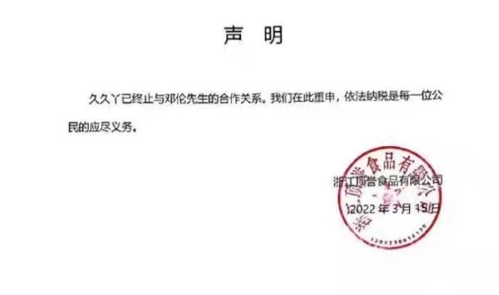 菜鳥裹裹微博也發(fā)布消息稱,與鄧倫已于2021年8月結(jié)束所有合作。