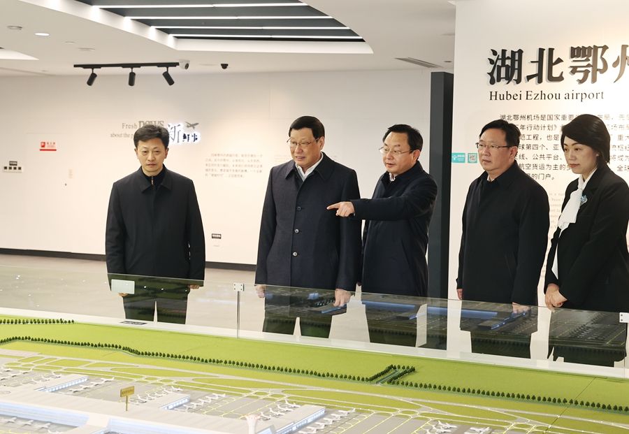 鄂州花湖機(jī)場(chǎng)是我省打造“雙樞紐”、融入“雙循環(huán)”的標(biāo)志性工程,目前已完成校飛、試飛。省領(lǐng)導(dǎo)來(lái)到空管塔臺(tái)和轉(zhuǎn)運(yùn)中心項(xiàng)目現(xiàn)場(chǎng),察看機(jī)場(chǎng)全貌、施工進(jìn)展。