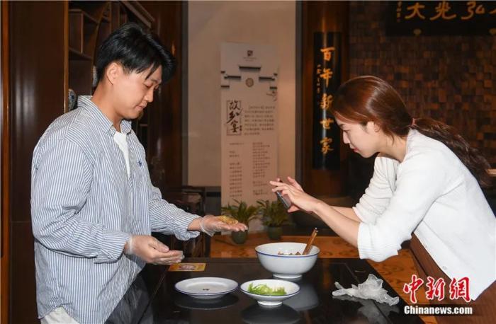 2021年,兩名韓國青年在魯迅故里浙江紹興學做魯迅筆下的紹興菜。中新社記者 王剛 攝