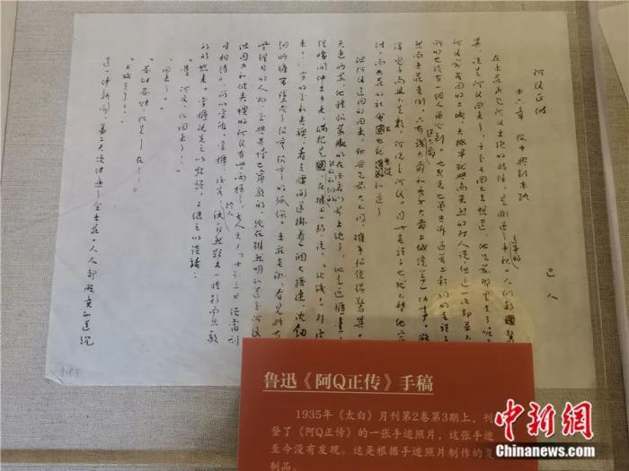 魯迅《阿Q正傳》手稿。中新社發 孫新明 攝