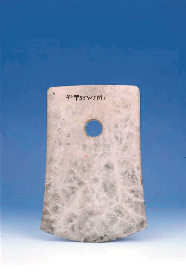 在荊州博物館,記者看到源于走馬嶺遺址的石鉞、陶豬、玉珠、鏤孔豆和紡輪等。專家稱,石鉞代表著軍權,走馬嶺墓葬中有許多出土,證實新石器時的古城有軍事功能。憨態可掬的陶豬背上,竟然還有一個小孔,專家認為它是一種類似于陶塤的樂器,將豬的形象運用于樂器上,“還意味著,當時的先民已對豬進行馴化、利用”。