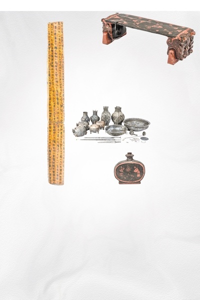除了“中華第一長文觚”,湖北云夢鄭家湖墓地還出土了一批罕見的葬具繪畫和漆木器。其中,葬具繪畫的題材均為首見,填補了秦漢繪畫的材質與類型的歷史空白,是中國美術史上的重要發現;而出土的漆木器保存極其完好,品類齊備,其中不少造型精致、紋樣獨特,文化內涵豐富,為研究戰國秦漢漆器生產流通、工藝美術提供了重要材料。