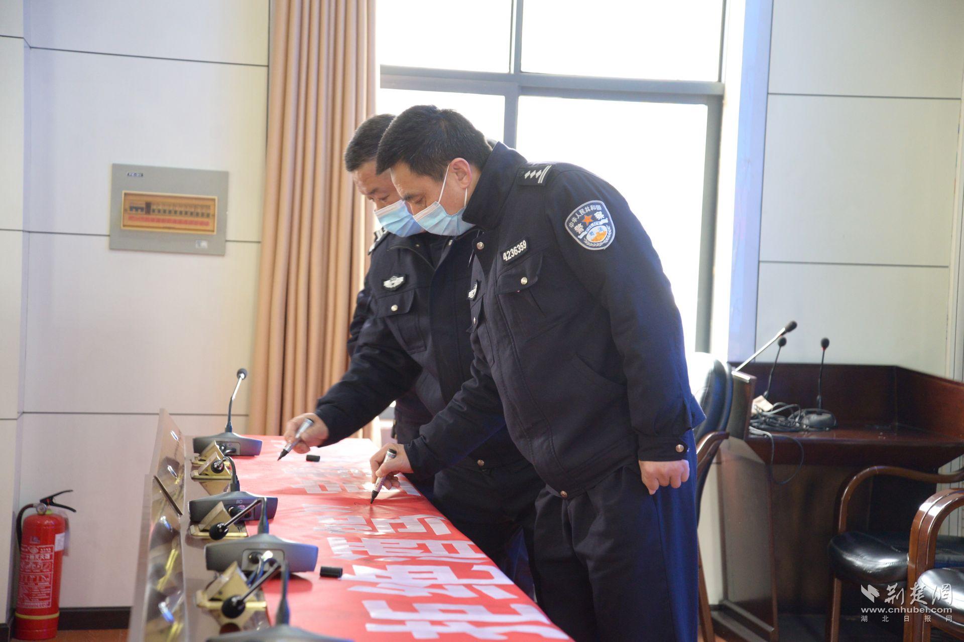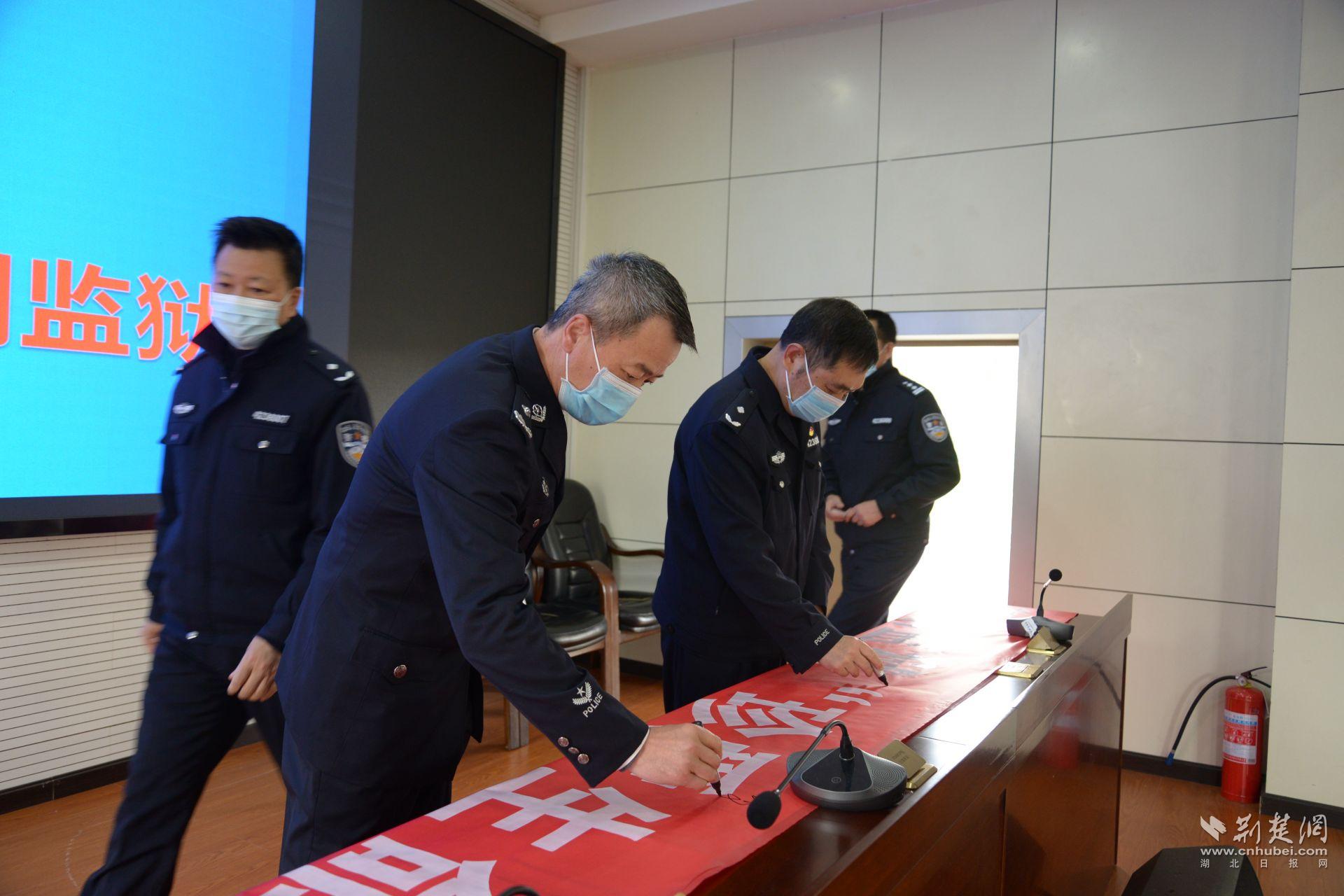 3月23日是沙洋小江湖監獄反酒駕警示教育日,活動現場,與會人員依次在“珍愛生命 拒絕酒駕”主題橫幅上簽名承諾。4名民警職工代表分別作反酒駕表態發言。