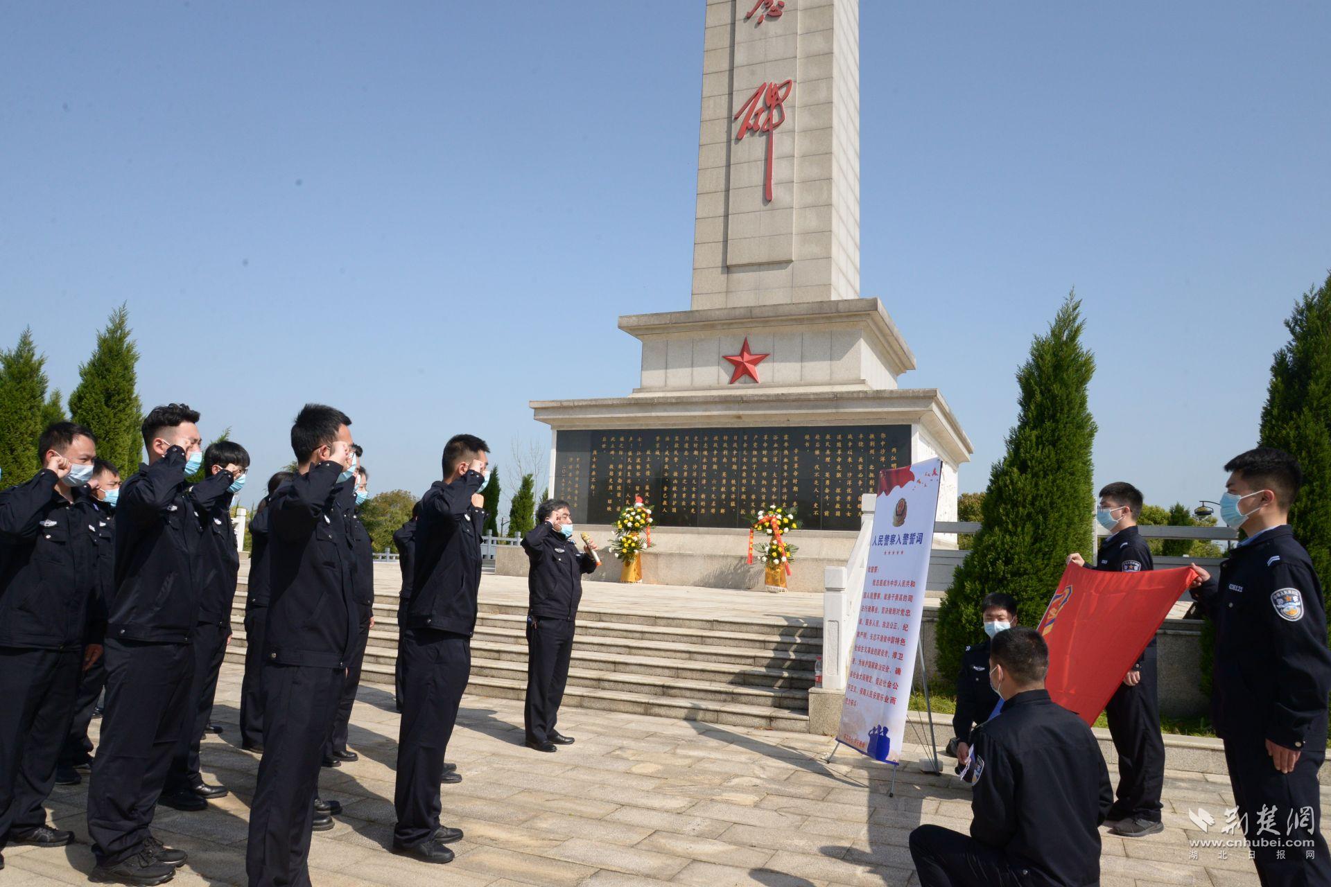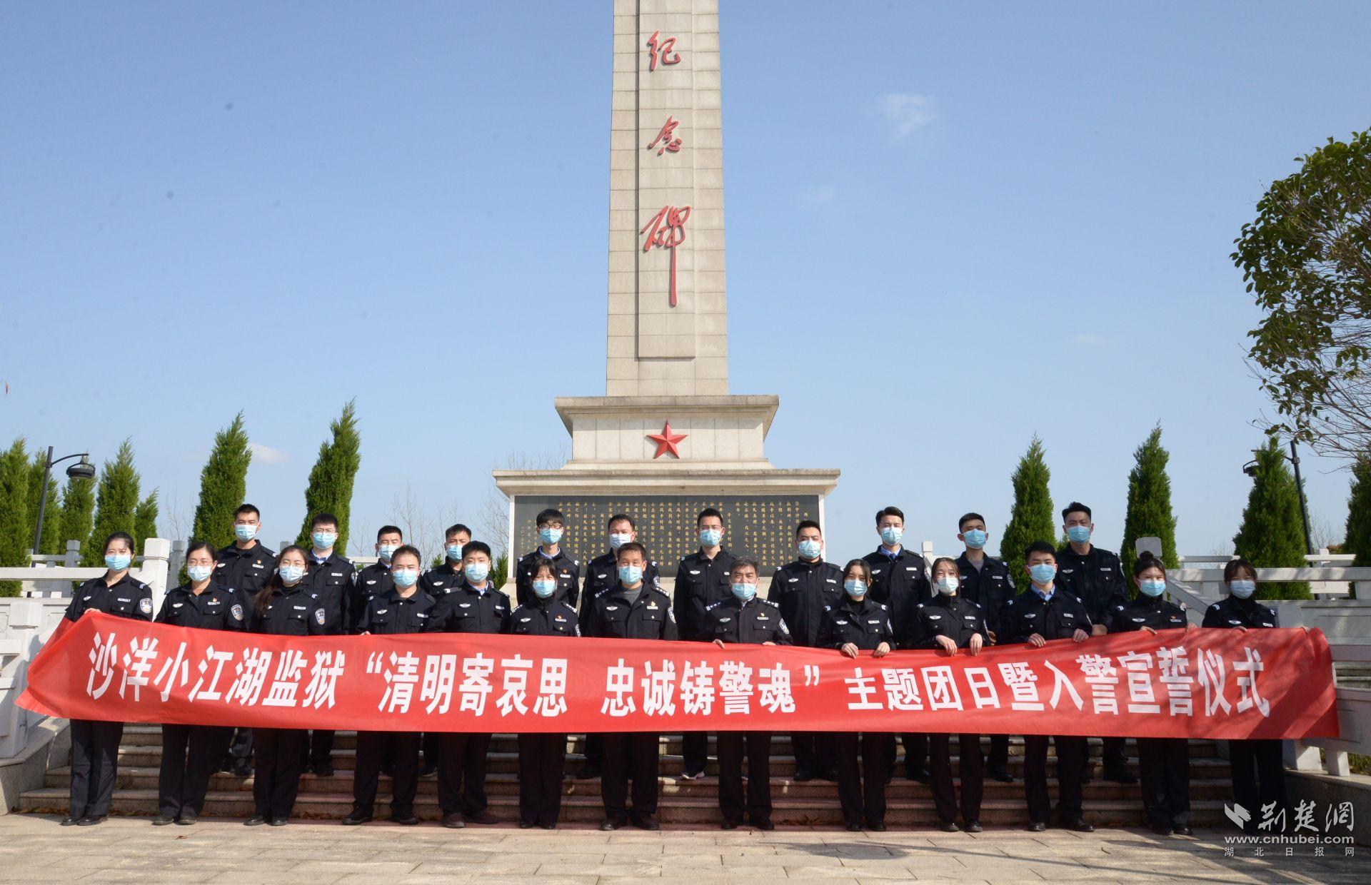 荊楚網(湖北日報網)訊(通訊員高天霖 王斐然 蘇藍馨)清明節將至,為緬懷革命烈士,賡續英模精神,激發新錄民警愛國主義情懷,3月29日,沙洋小江湖監獄組織2021年新錄民警到沙洋烈士陵園開展“清明寄哀思 忠誠鑄警魂”主題團日暨入警宣誓儀式。