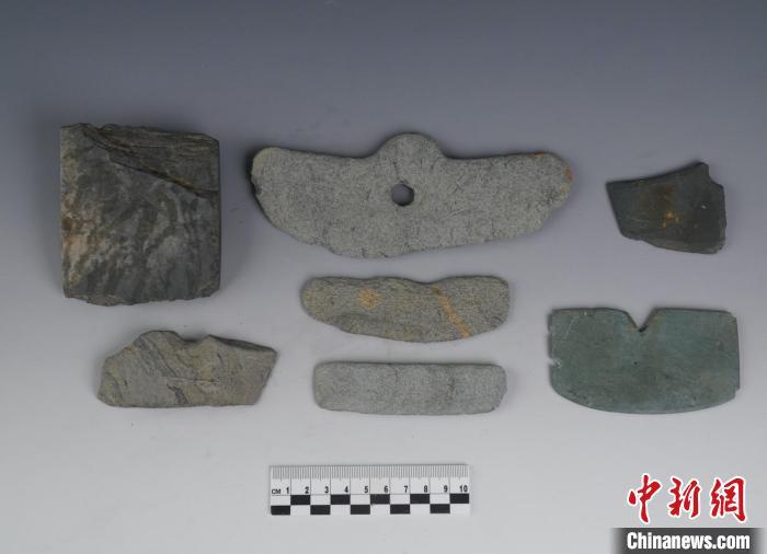 良渚文化稻田邊緣堆積與古河道出土的石斧、石刀。 王永磊提供