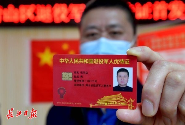 退役軍人張茂益獲得首批優(yōu)待證。 長江日報(bào)記者劉斌 攝