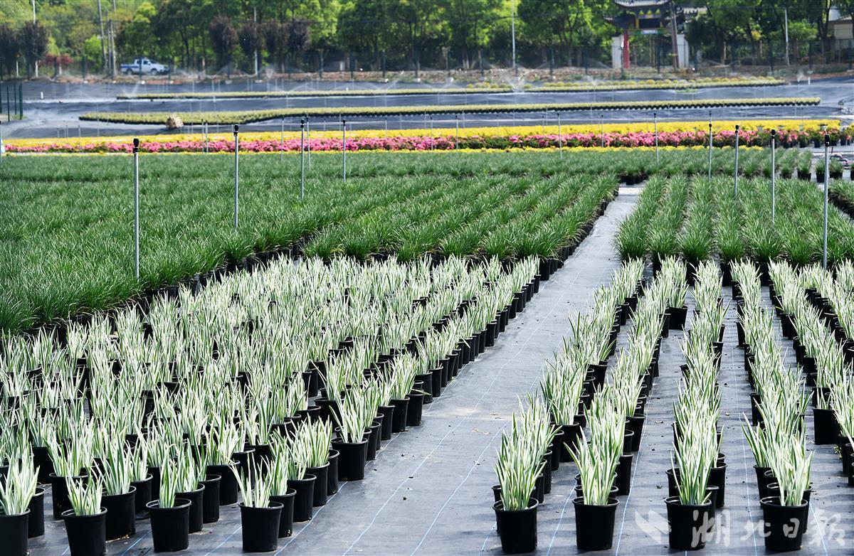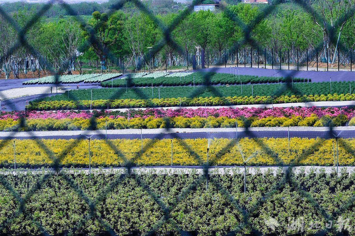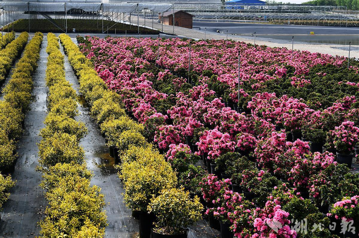 據了解,該生態營地種植有近百個景觀盆景品種,有的種植在大棚里,有的種植在室外,其中杜鵑等花已盛開。(湖北日報全媒記者 朱熙勇 攝)