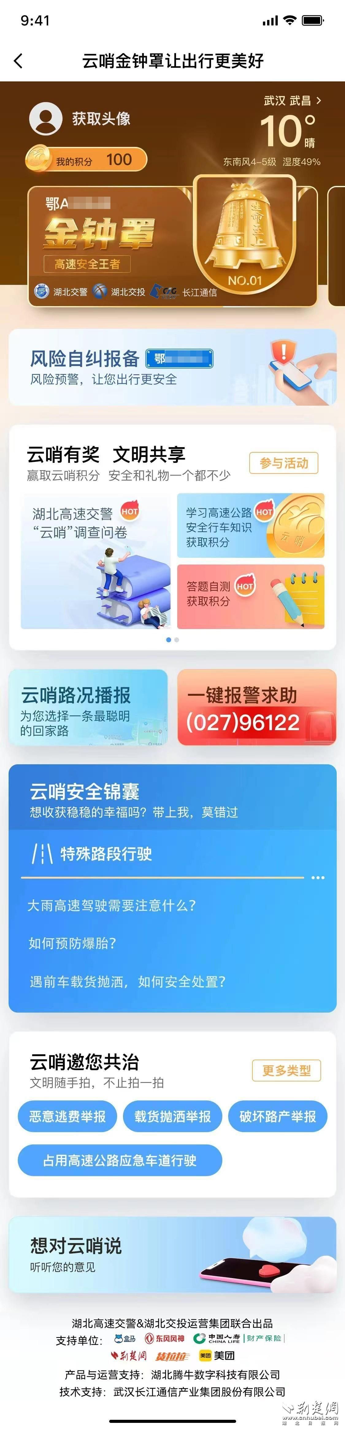 為更好拓展“云哨”預警服務,4月11日,湖北省公安交通管理局聯合湖北交通投資集團有限公司、武漢長江通信產業集團股份有限公司、湖北荊楚網絡科技股份有限公司等9家單位推出“云哨”交通安全“金鐘罩”主題活動,讓交通參與者主動防險糾險,進一步了解“云哨”預警“讓出行更美好”的實質意義,共建安全文明的交通環境。