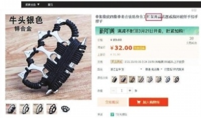 這種“帶釘?shù)慕渲浮保瑢I(yè)術(shù)語(yǔ)叫做“指虎”,是格斗人士常用的一種武器,往往由金屬制成,有的帶釘有的不帶釘。無(wú)論是哪種,戴在手上之后都可以增加拳擊的殺傷力。記者搜索發(fā)現(xiàn),這樣的兇器,居然在網(wǎng)上可以被當(dāng)做“防身用品”隨便買(mǎi)到。