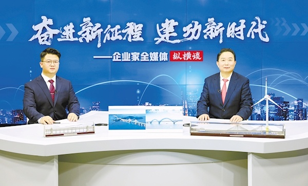 中鐵大橋局集團黨委書記、董事長文武松(右)做客湖北日報企業家全媒體縱橫談。 (湖北日報全媒記者 柯皓 攝)