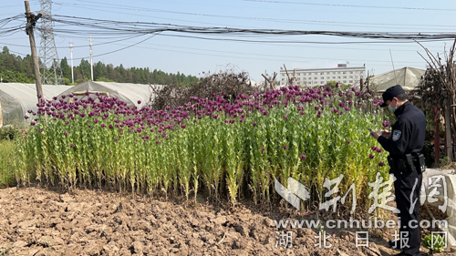 4月11日,該轄區(qū)武湖派出所接到群眾舉報,稱有人疑似在武湖大道附近種植罌粟。接到報警,民警李寅、輔警汪曦立即趕至現(xiàn)場。經(jīng)辦案民警仔細辨認和核實,確認這就是毒品原植物罌粟,共計1171株。