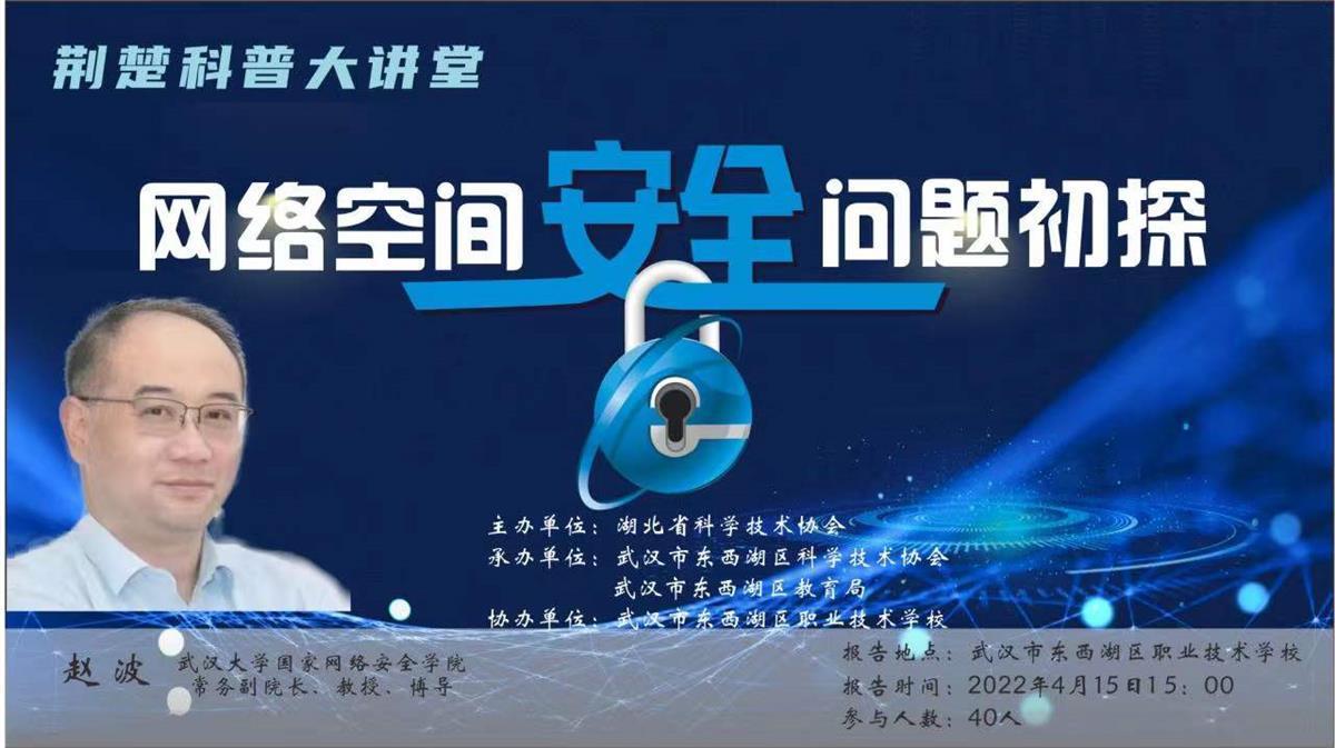 湖北日報訊(記者陳熹、通訊員陳玉芬)網絡安全涉及哪些方面?普通人怎么防范網絡危險?4月15日,荊楚科普大講堂——網絡空間安全初探開講,武漢大學國家網絡安全學院博導、中國密碼學會理事、湖北省網絡空間安全研究中心主任趙波深入淺出,一一剖析解答。