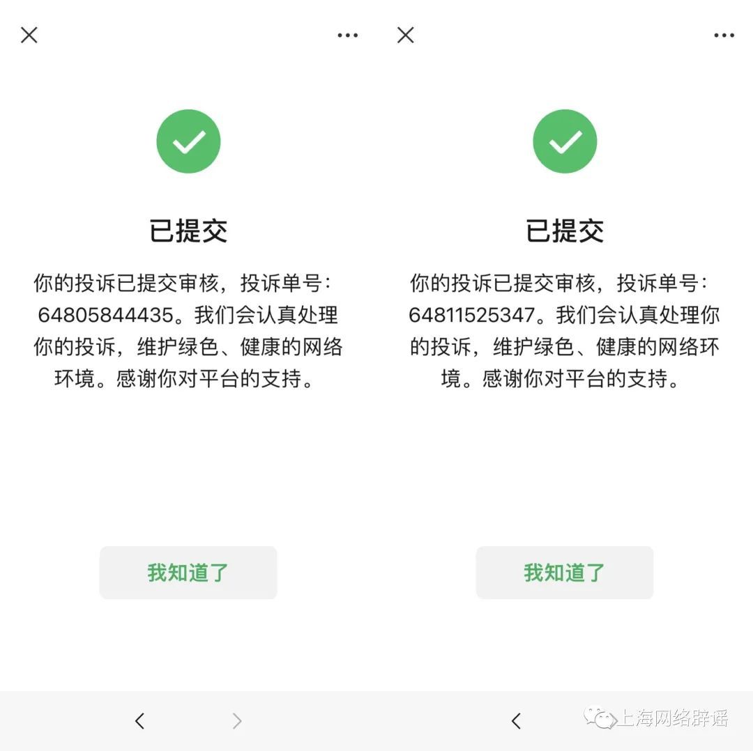 陳村向記者出示了向微信官方投訴不實(shí)消息的截圖,令他無奈的是,不實(shí)消息仍在流傳,“朋友告訴我,兩篇文章已經(jīng)10萬+了?!?/p>