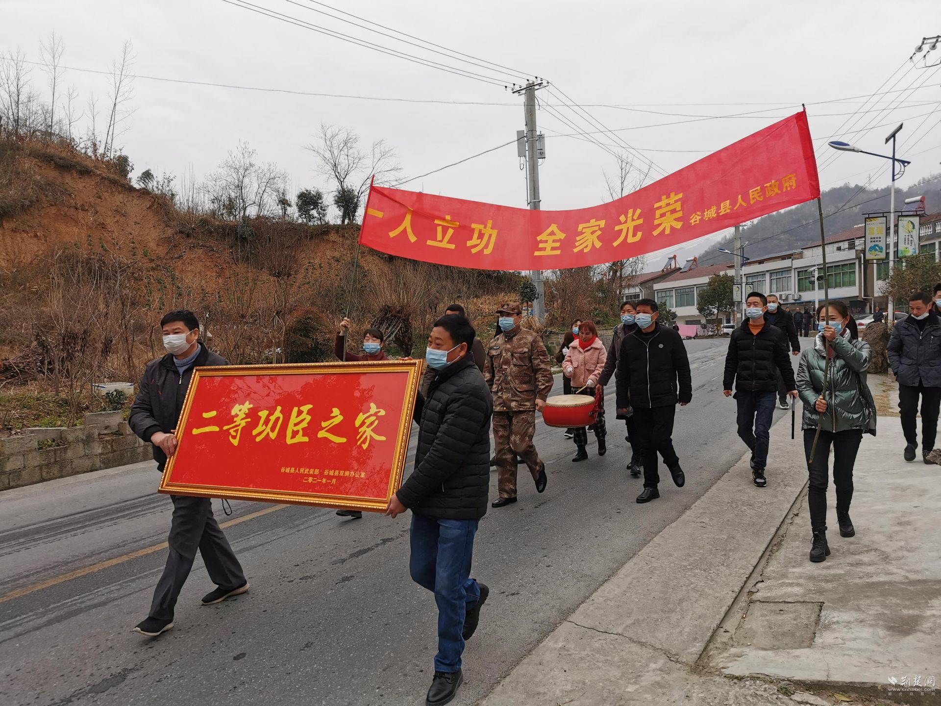 谷城是全國雙擁模范縣、湖北省革命老區。近年來,谷城縣細化標準、規范流程、豐富內涵,扎實推進立功受獎軍人家庭送喜報工作,做到送達一份、光榮一家、影響一片,形成了尊崇軍人、關愛軍屬的濃厚社會氛圍。