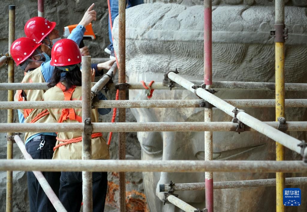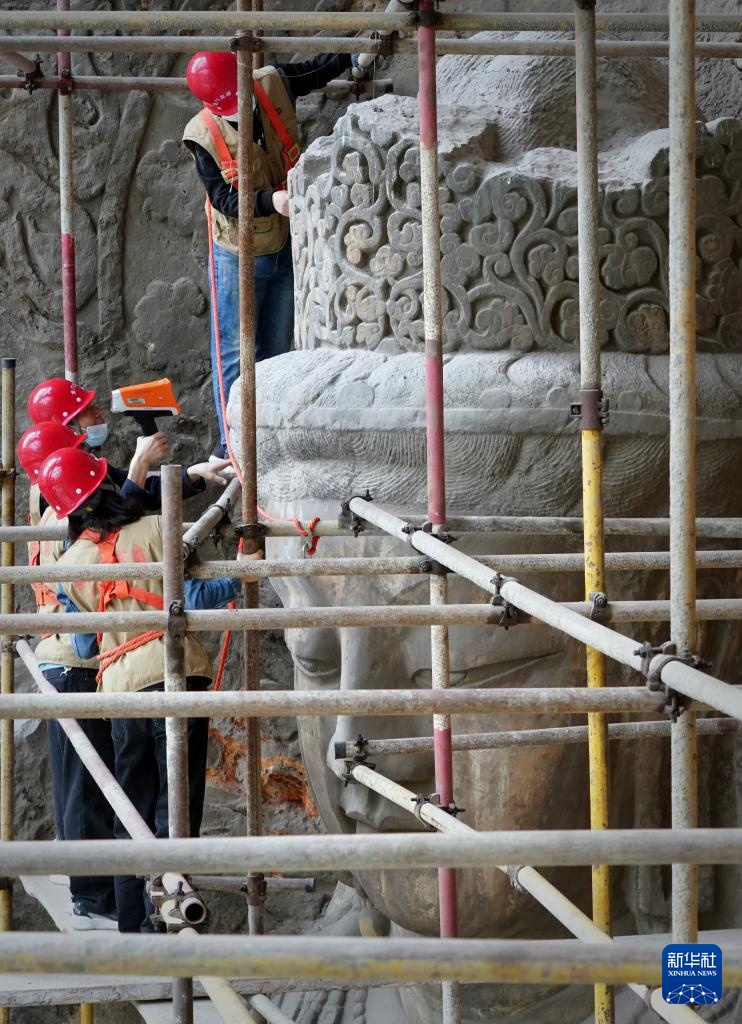 記者從龍門石窟研究院獲悉,目前,洛陽龍門石窟奉先寺大型滲漏水治理和危巖體加固保護工程總體工作量已完成70%,預計6月完工。該工程于2021年12月啟動,這是自1971年以來,時隔50年,奉先寺再次啟動大型保護工程。