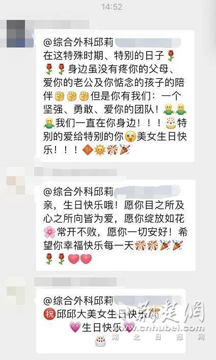 由于工作的關系,這場“生日會”短短慶祝了幾分鐘就結束了。邱莉說,“我也沒有想到大家都記得我的生日,還有院領導也特地打電話來慰問,家人、朋友都給我發來了生日祝福,我很榮幸能夠在這個特殊時期、特殊地點,過了這個特殊的生日。”