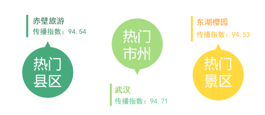 在市州維度,本期武漢傳播指數(shù)為94.71,咸寧94.57,宜昌94.54,分別位居前三。經(jīng)梳理發(fā)現(xiàn),武漢的微信、微博、短視頻平臺的提及數(shù)遠(yuǎn)超其他市州,但受部分負(fù)面報道影響,導(dǎo)致與第二第三名傳播指數(shù)相差不大,未能拉開明顯距離。就全網(wǎng)傳播情況進(jìn)行分析,3月武漢傳播指數(shù)受到多方面因素助推。政策方面,國務(wù)院批復(fù)同意《長江中游城市群發(fā)展“十四五”實施方案》,媒體將其解讀為湖南湖北江西迎來國家重大政策紅利。其中提到支持三省旅游業(yè)聯(lián)動發(fā)展,共建旅游線路。打造紅色武漢、革命大別山、秋收起義·湘贛紅旗等紅色旅游線路,推進(jìn)韶山一井岡山等紅色旅游專線綜合開發(fā);打造武漢一長沙一南昌周末游產(chǎn)品。在生態(tài)旅游方面,武漢江夏區(qū)靈山廢棄礦區(qū)打造成4A級景區(qū),經(jīng)過兩年多的綜合治理,完成華麗轉(zhuǎn)身,成為獨具特色的礦山遺址公園和新晉網(wǎng)紅打卡地,為生態(tài)修復(fù)旅游趟出一條新思路。相關(guān)新聞獲新華網(wǎng)、中國環(huán)境報、中國新聞網(wǎng)、工人日報、人民周刊網(wǎng)、半月談等主流媒體轉(zhuǎn)載報道,可見,好的旅游創(chuàng)新做法無疑是地方旅游形象傳播的一大推手。此外,景區(qū)方面也因春天到來煥然一新,獲網(wǎng)民關(guān)注。