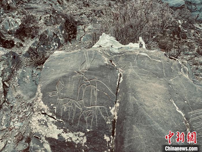 日喀則博物館副館長、日喀則石刻藝術博物館負責人格旺介紹,調查組在仁布縣邦亞山谷進行石刻文物挖掘調研工作時,經從村民處了解,在離卡若村5公里遠的山谷一巖崖表面發現了一組四只鹿和一盤十六格圍棋組成的鑿刻巖畫。