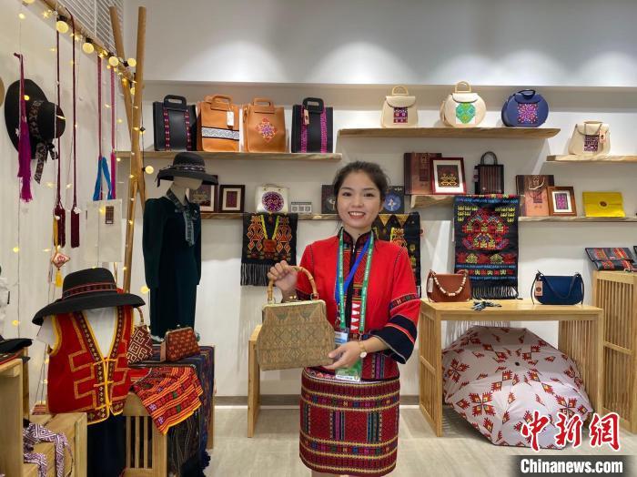 圖為海南黎族姑娘陳孟麗展示自己原創品牌“布黎布舍”。 符宇群 攝