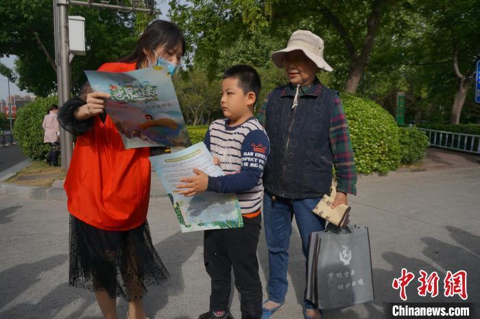 圖為志愿者向市民介紹世界地球日科普知識。 韓章云 攝