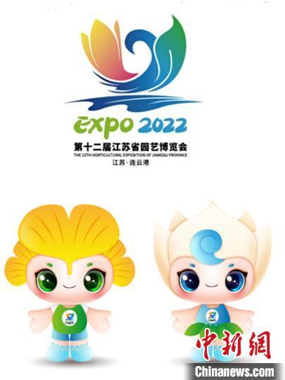 第十二屆江蘇省園藝博覽會公布會徽(上)和吉祥物“港園園”“港藝藝”(下) 第十二屆江蘇省園藝博覽會組委會供圖