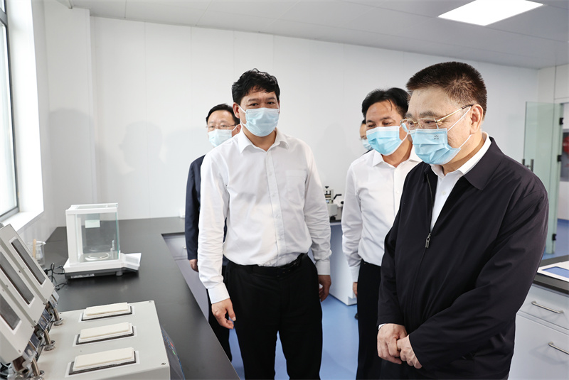 仙桃是全國最大的非織造布生產、加工和出口基地。在國家非織造布產品質量檢驗檢測中心(湖北),王蒙徽聽取仙桃市非織造布產業園規劃建設情況介紹,察看非織造布產品檢測實驗室運行情況,詳細詢問原材料來源、產品種類、功能特點等,強調要以園區為載體,依托“國字號”檢測中心,吸引更多產業鏈上下游企業集聚發展,推動非織造布產業產能升級、結構升級、品牌升級。恒天嘉華非織造有限公司是一家生產高端醫用非織造材料的行業領軍企業。王蒙徽走進廠區察看生產線,仔細了解企業產品研發、工藝流程、市場銷售等情況。他強調,非織造布產業是我省特色產業。要充分發揮湖北的區位、產業、科教等比較優勢,抓住非織造布產品市場需求不斷擴大的機遇,堅定不移推動科技創新,持續提升我省非織造布產業核心競爭力。
