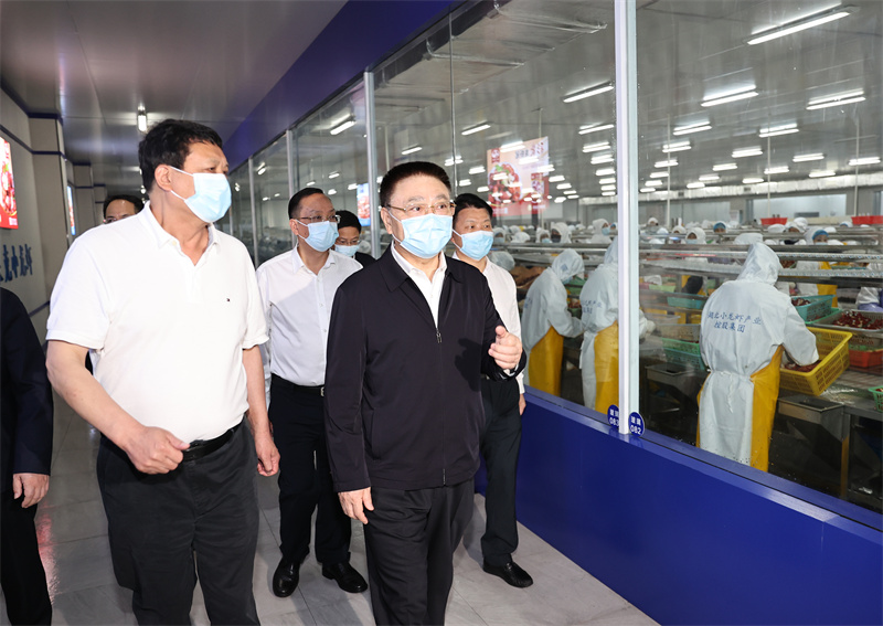 潛江是“蝦稻共作”模式發源地,被譽為“中國小龍蝦之鄉”。王蒙徽來到湖北小龍蝦產業控股集團有限公司,察看蝦、稻特色產品和小龍蝦加工車間,聽取企業生產經營情況介紹。“蝦稻共作效益怎么樣?”“對種糧食有沒有影響?”“農民在公司打工收入高不高?”王蒙徽高度肯定“蝦稻共作”這種高效生態種養模式,勉勵企業發揮龍頭企業優勢,進一步把品種做優、品質做高、品牌做強,推動小龍蝦全產業鏈升級發展,為豐富城鄉居民“餐桌”和促進農民增收作出新貢獻。他強調,要立足江漢平原豐富的農業資源,因地制宜發展更多富民產業,打牢鄉村振興的產業基礎。
