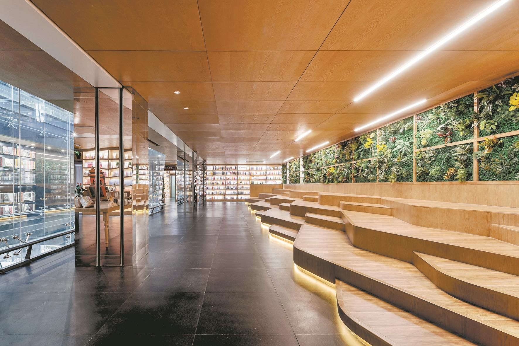 一樓的“V 光 STAGE”,可以容納250人,是獨(dú)一無二的藝文客廳;二樓的迷宮閱讀區(qū)寧靜溫暖,好似一處溫柔的私人書房;五樓的膠囊美術(shù)館,這里有常常上新的藝術(shù)場景;七樓的天光花園,“會呼吸的”屋頂藏匿著一個關(guān)于時空的秘密……